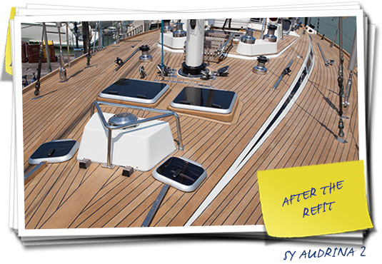 SY Audrina 2, a 57ft Swan sailing yacht was built in 1980 by Nautor Yachts. In 2012 Audrina 2 came to Precision for a complete upgrade. The teak deck was replaced, the hull was resprayed with AWLGRIP Majestic blue and Oyster white, the owner’s stateroom was re-designed & completely re-built and much more.