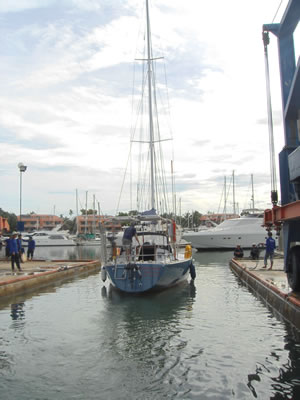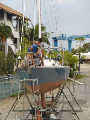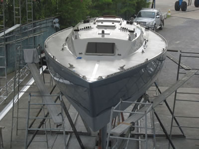 The 34’ sailing yacht Zen Again came to Precision Shipwright Services late February 2013 and all work was completed for re-launching in June. The Keel and hull were repaired after a grounding and a full osmosis treatment was completed. The deck and mast were re-sprayed with AWLGRIP Matterhorn white and the hull was painted with Stars & stripes blue. The teak deck was replaced in the cockpit area and some stainless steel work was carried out.